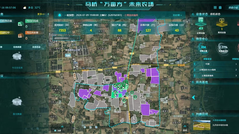 而在海寧馬橋“萬畝方”項目現場,伴隨著多日來的高溫天氣,“萬畝方”未來農場數字駕駛艙中發出了“空氣濕度偏低”的智能預警,灌排系統開始在物聯網設施的協同配合下自動調節田間溝渠水位,并向作業服務人員給出了相應農事建議。項目負責人表示,通過該系統還能實現氣象預警、遙感監控等功能,讓該項目真正成為在“三夏”時節無懼旱澇的“智慧農田”。